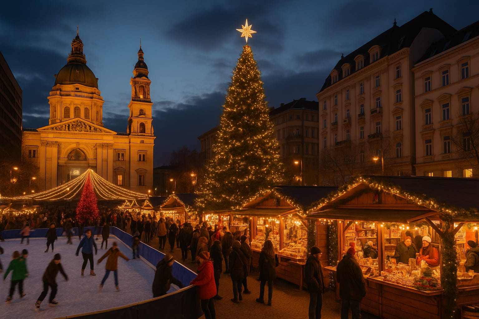 Что посмотреть: видеопроекции на фасаде храма, каток, уличные концерты, венгерские сладости и пунш.
