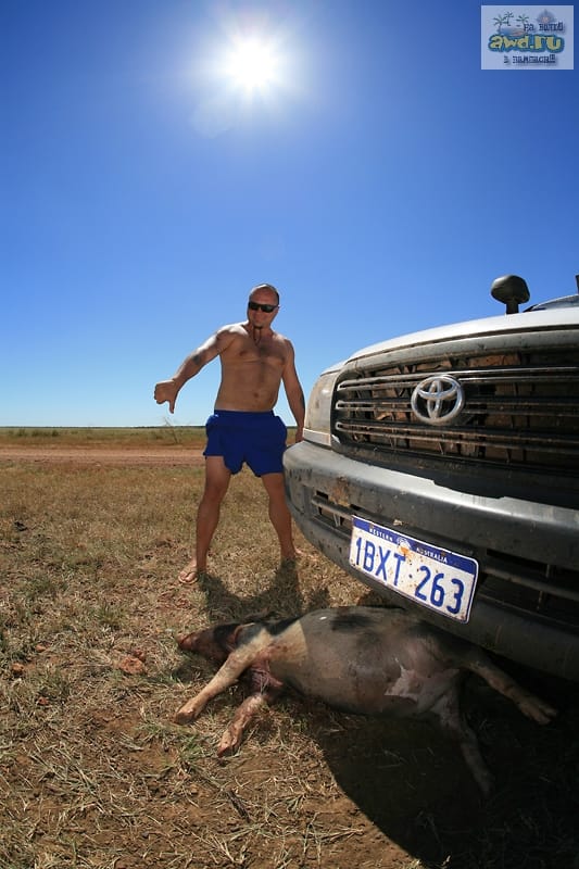Сегодня мы раздавили 2 змеи и спугнули несколько кенгуру, которые хотели протаранить нашу машину.