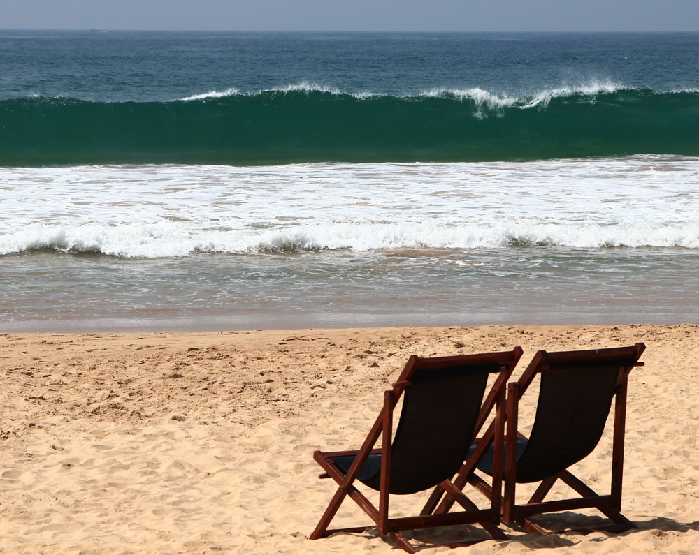 Видимо на фото ниже как раз начало Хиккадувы. Точно — это заметно по плоской поверхности пляжа и по лежакам с балдахинами вдоль берега. Тюлений отдых или попытки что-то делать с доской для серфа. Но для серфа я лучше места бы предложил: остров Лембонгам, сосед Бали.
