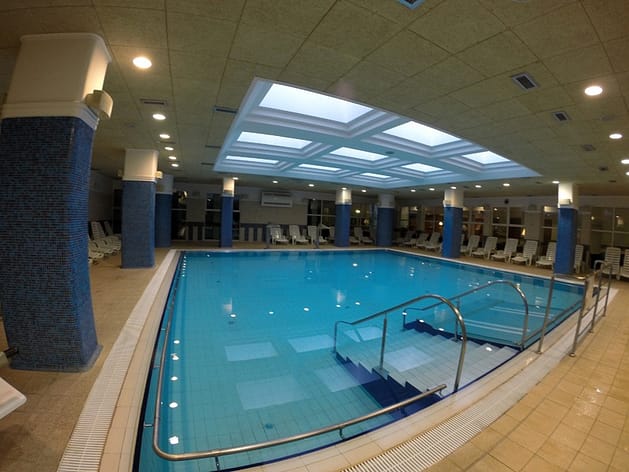 Есть бассейн для плавания, этажом ниже есть бассейн с соленной водой озера Урсу — она теплая и зеленая. При погружении в него тело выталкивает на поверхность, поэтому люди здесь просто лежат в воде, плавая как бревна. Так же рядом на этом этаже еще два бассейна с обычной водой и гидромассажная ванна. Так же есть дорожка с речными булыжниками с контрастной водой: одна ледяная, другая горячая. Ходишь по кругу: сначала в ледяной воде, потом в горячей. Массируешь стопу голышами и тонизируешь сосуды контрастом температуры.