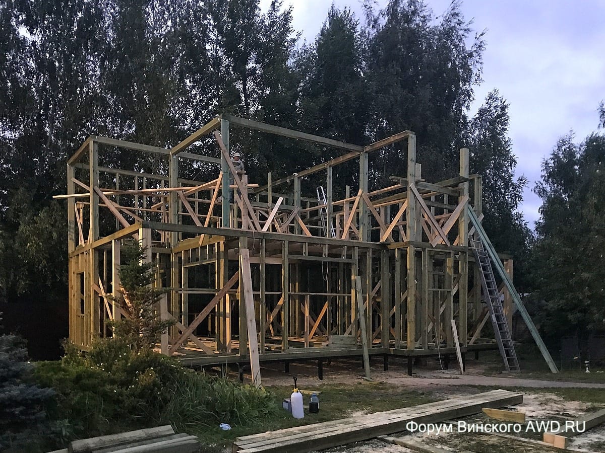 - Фото этапов строительства каркасного дома