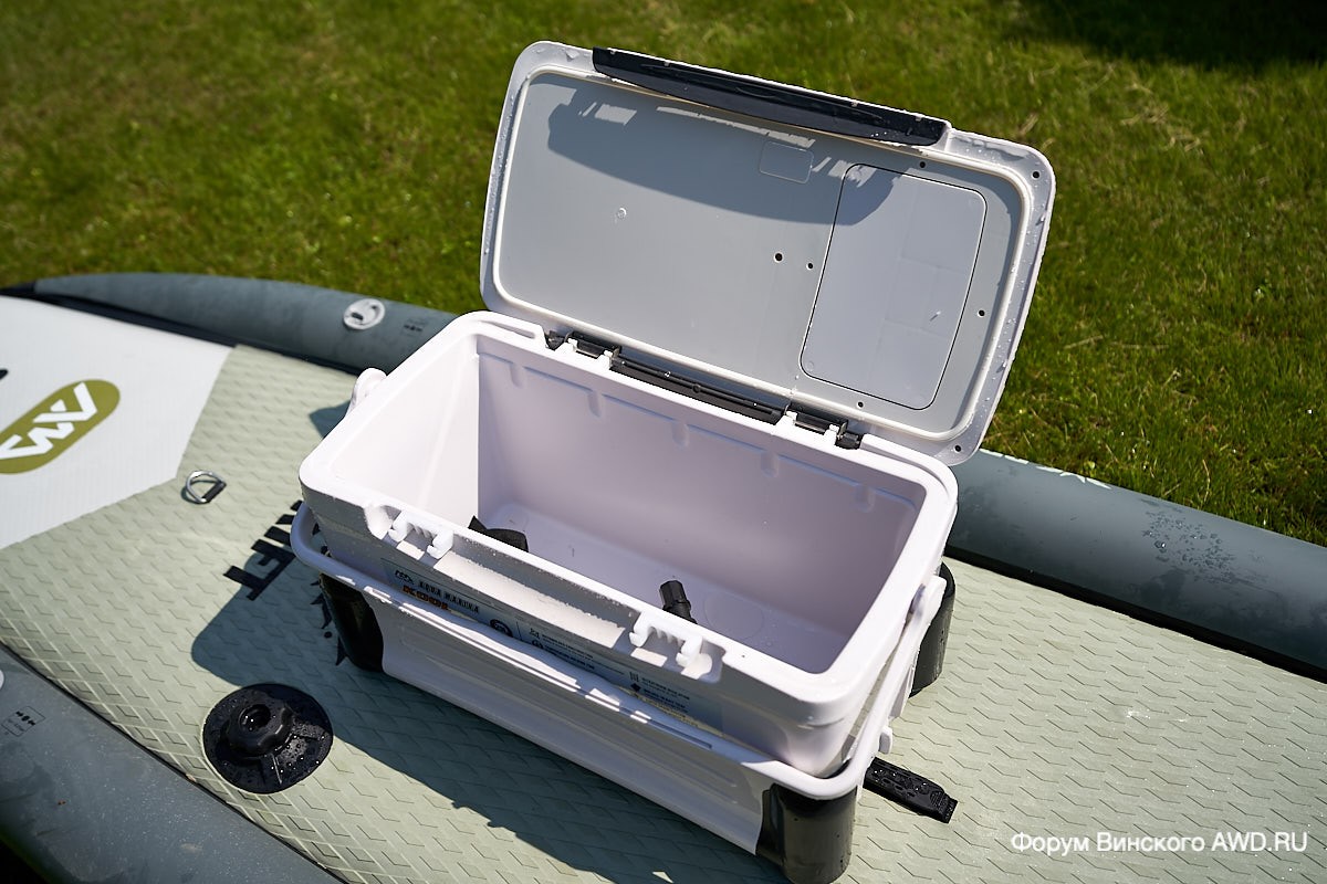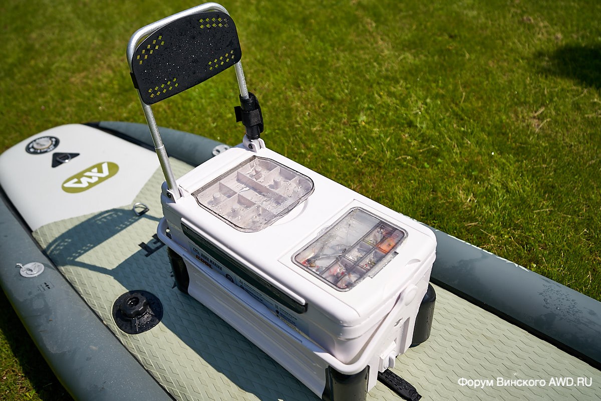 Вес доски 12 кг — донести до озера можно, но в комплекте с доской весло и ящик-холодильник.