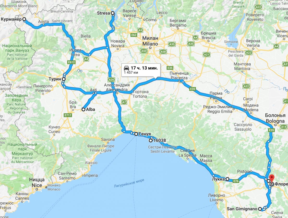 Прогулявшись по затопленному (как показывало ТВ) центру Генуя(Genova), мы остановились перевести дух в Санта-Маргерита-Лигуре (Santa-Margherita-Ligure), где на пляже помогли в распилке дров местным итальянцам, а после заехав и прогулявшись в городе Лукка (Lucca), мы немного поколесили по долина Кьянти (Chianti) попробовав суши по-тоскански у знаменитого мясника Дарио, и наконец в конце нашего путешествия выпили бутылочку другую третью чудесного тосканского (и не только) вина во Флоренция (Firenze).