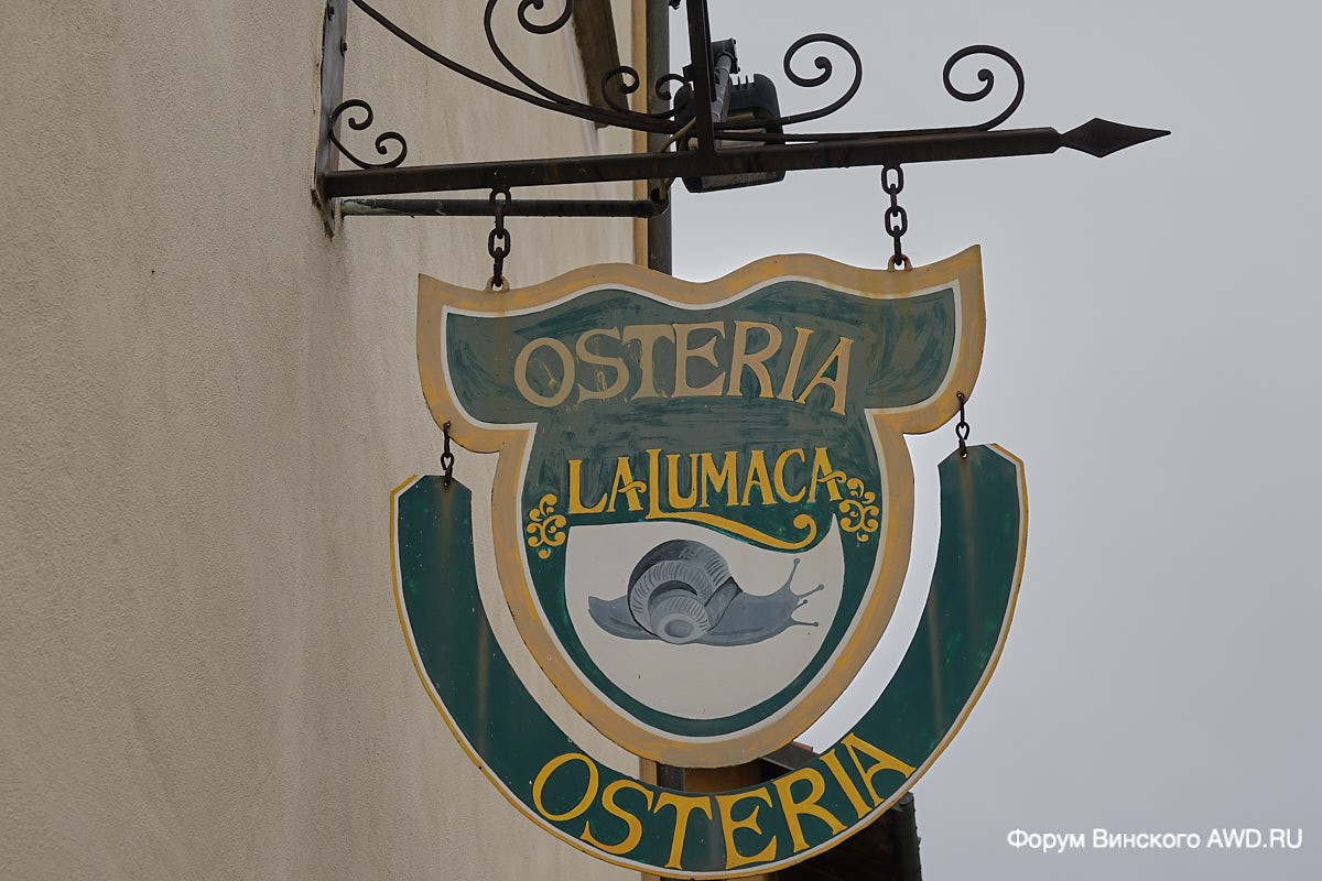 Немного прогулявшись по городу который особенно ничем не выделяется из ряда провинциальных итальянских городов, мы спустились в подземелье ресторана Osteria La Lumaca.