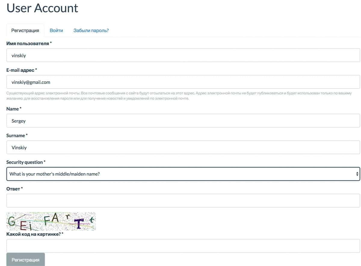 Жмем ссылку «Регистрация», заполняем форму и отправляем.