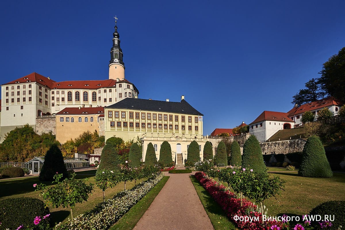 Красивый, хорошо отреставрированный средневековый замок на реке Мюглитц, в 15 км от Дрездена на юг.