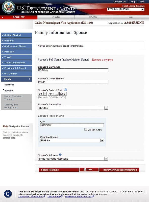 Анкета на визу в США DS-160 для мужчин отличается от анкеты для женщин.