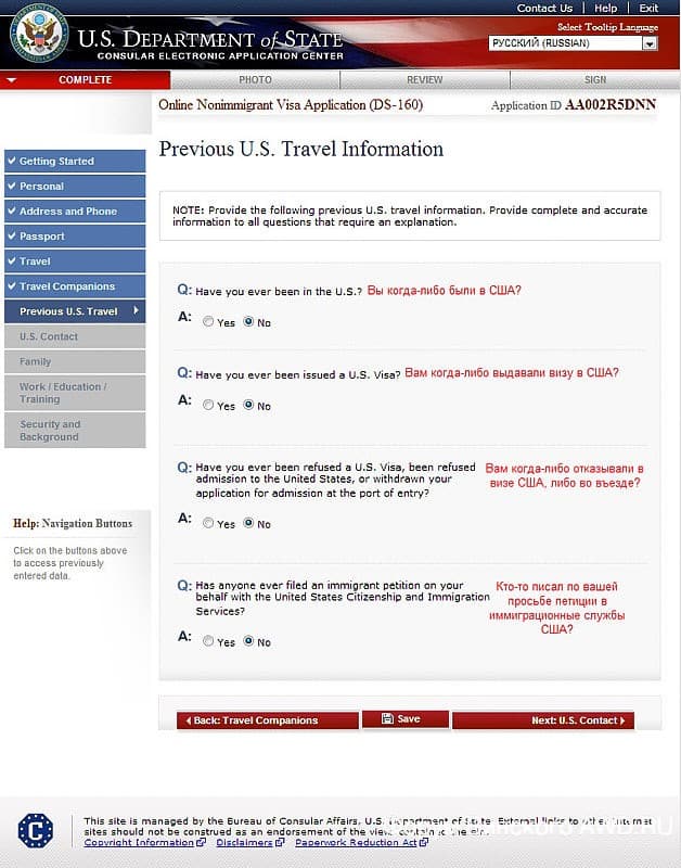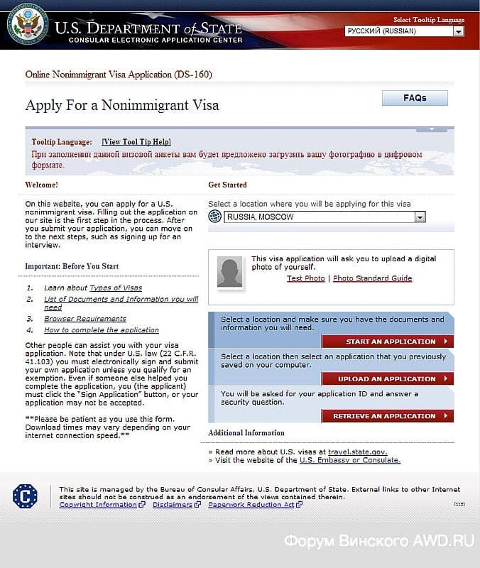 Форма анкеты на визу в США находится здесь: https://ceac.state.gov/GENNIV/