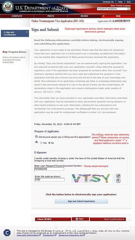 Шаг 27 : Все — посылаем анкету в Госдеп